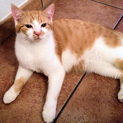 READY ist ca. 1,5 Jahre alt. Er hat ein rot-weißes Fell (rot getigerter Rücken, weißer Bauch und Brust). Auffallend ist ein roter (oranger) Fleck um Maul und Nase. READY ist Freigänger und Fremden gegenüber sehr aufgeschlossen und zutraulich.