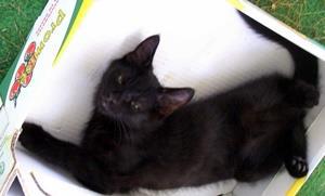 VERITAS ist 1 Jahr alt. Sie ist eine kleine und zierliche Katze mit einem komplett schwarzen Fell. VERITAS ist anfänglich etwas scheu.