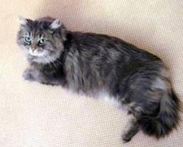 Kater SUNNY ist ca. 3 Jahre alt. Er ist ein Angorakater mit Einschlag norwegische Waldkatze. Er hat ein langes graues Fell und grüne Augen. SUNNY ist äußerst scheu.