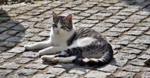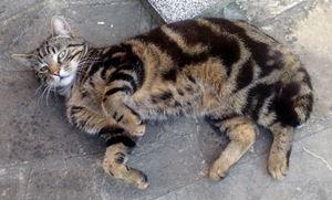 Kater VASILIS ist 3 Jahre alt. Er hat ein schwarz-braun getigertes Fell mit weißer Brust, Bauch und Pfoten. Auffallend ist ein brauner Punkt auf seiner weißen Brust. VASILIS ist Freigänger und Fremden gegenüber eher zurückhaltend.