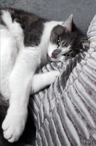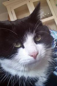 Kater PIANO ist 4 Jahre alt. Er hat ein schwarz-weißes Fell mit weißen Pfoten. Er hat auf seinem Rücken einen schwarzen Fleck in Herzform. PIANO ist Freigänger und Fremden gegenüber eher zutraulich.