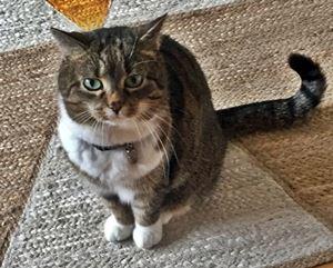Kater BALU ist 4,5 Jahre alt. Er hat ein schwarz-braun getigertes Fell mit weißer Brust und Bauch sowie weißen Pfoten. Er ist Freigänger und sehr zutraulich.