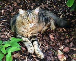 KIRRA ist erst 6 Monate alt. Ihr Fell ist schildpattfarben mit dunklen Stellen im Gesicht und einem hellen rötlich getigerten Schwanz. KIRRA ist tagsüber Freigängerin und Fremden gegenüber eher zurückhaltend.