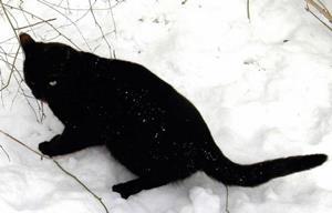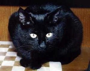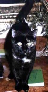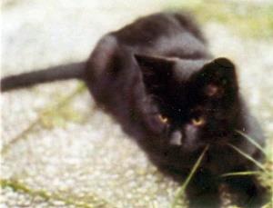 Kater CARLOS ist 5 Jahre alt. Er ist ein schwarzer Kater mit einigen weißen Haaren um den Hals. Er hat Pinselohren. Er ist vor allem zu Kindern recht zutraulich, läßt sich jedoch nicht heben - dann beißt und kratzt er.