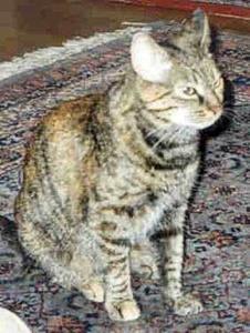 SALLY ist 3 Jahre alt und ist eine braungetigerte Angoramix-Katze mit weißlichem Kinn. Sie hat einen Riß im rechten Ohr.