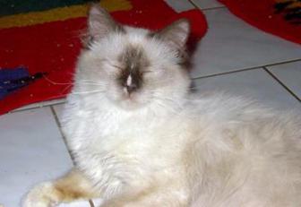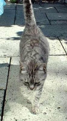 Am 22. Oktober 2003 wurde eine ältere grau getigerte Katze (vermutlich Perserkatze) verletzt unter einem Auto gefunden. Sie hat fast keine Zähne mehr und eine ältere Verletzung an der rechten Vorderpfote.